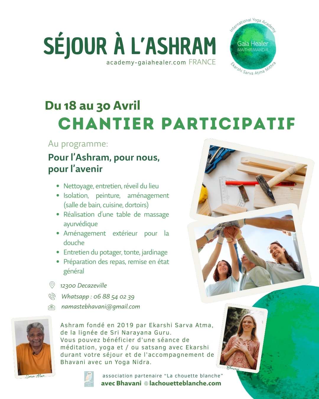 « Vie D’ashram » : En DEHORS DES TEMPS DE STAGE , l’École de Yoga Gaia Healer à Decazeville vous reçoit contactez-nous !